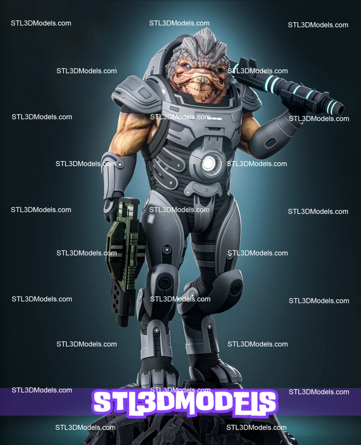 Bring raw Krogan power to your collection with the Grunt STL 3D model, the loyal tank-born warrior from the Mass Effect series, bred for battle and built for dominance.