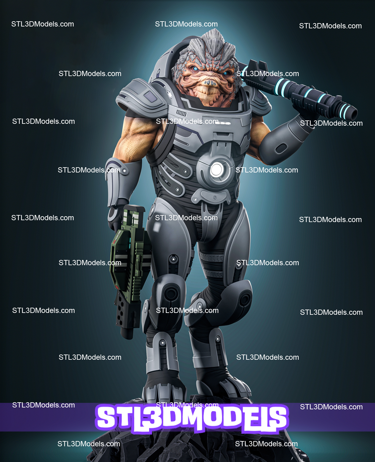 This highly detailed Grunt 3D model captures the genetically engineered Krogan in a dynamic combat stance—complete with heavy armor plating, aggressive posture, and signature shotgun at the ready. Ideal for Mass Effect fans, sci-fi figure collectors, and RPG wargamers, Grunt adds brute force and sci-fi flair to any display or gaming session.