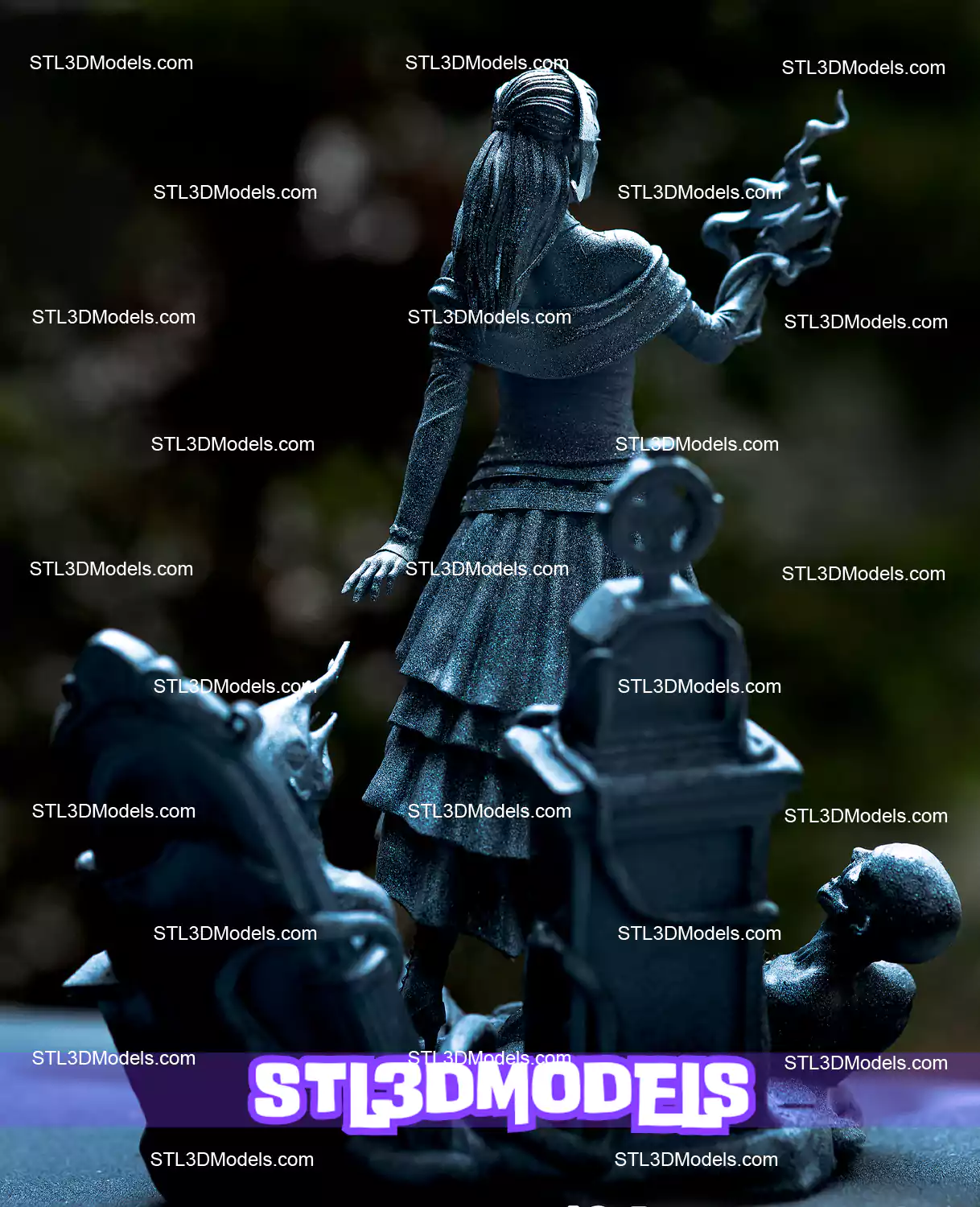 Designed for exceptional performance on FDM and resin printers, the model includes pre-supported and unsupported STL files, with carefully segmented parts to preserve every ornate detail—from her jewelry and tattoos to the arcane energies swirling around her.